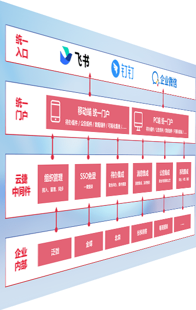 对协作平台提供支持服务,,,支持企业应用与协作平台对接,,,,包含组织同步、、、、消息集成、、、待办集成等。。。支持目前主流的协作平台:钉钉、、、企微和飞书。。